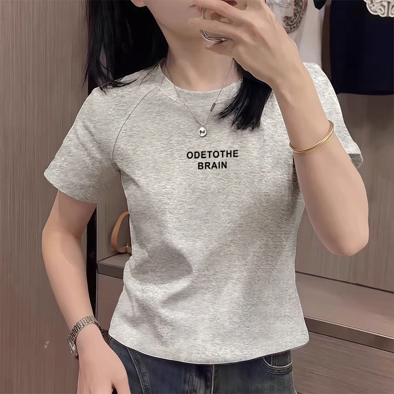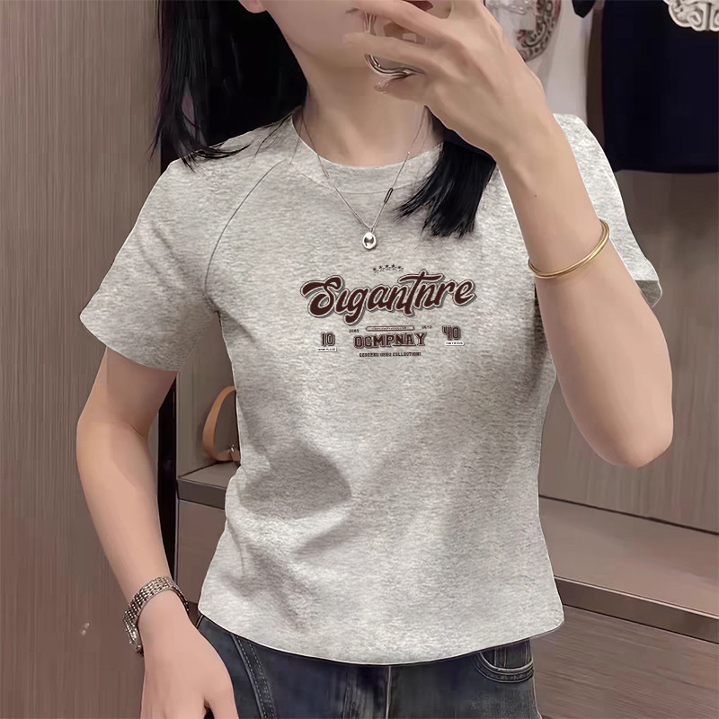 高腰上衣夏季 欧货高级感正肩短款 小个子短袖 T恤女搭配阔腿裤 新款