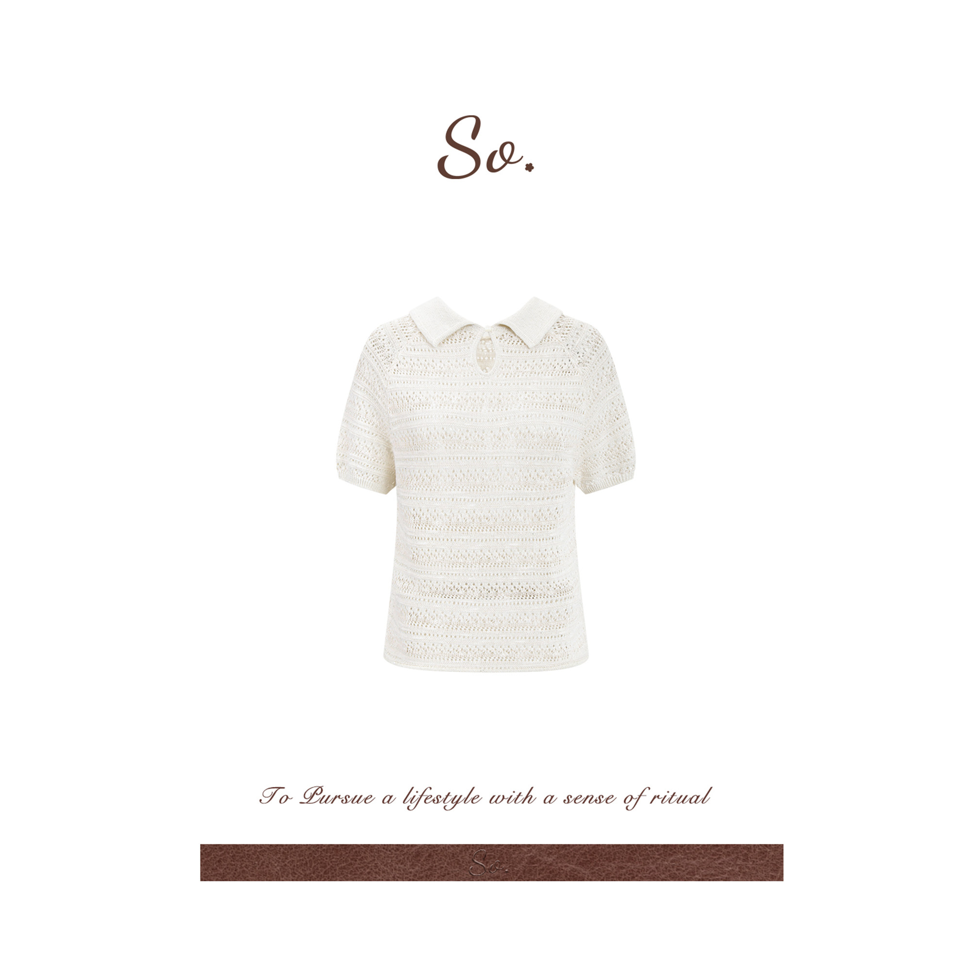 春夏精致感镂空钩花显瘦娃娃领针织衫 休闲慵懒上衣 26ss法式