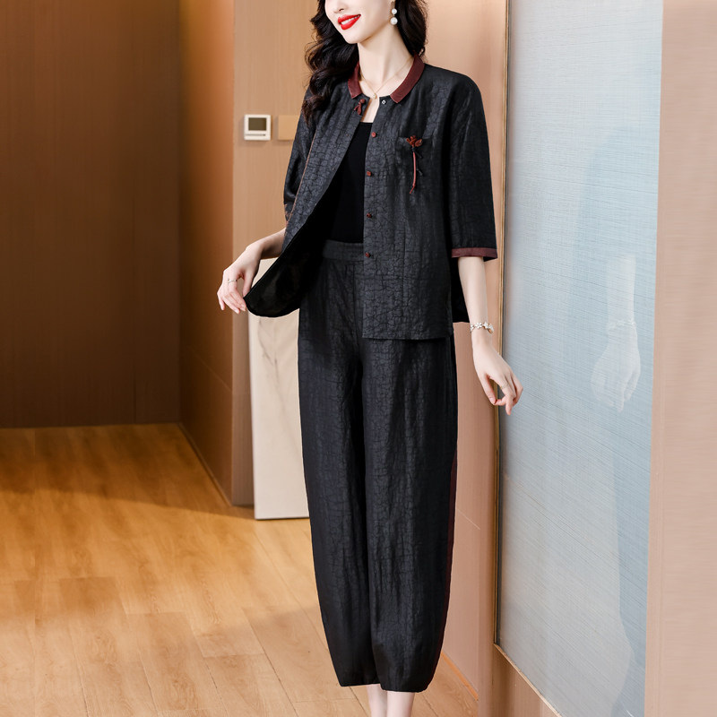 女高贵香云纱真丝衬衫 2026夏季 新款 高档时套装 子两件套气质妈妈 裤