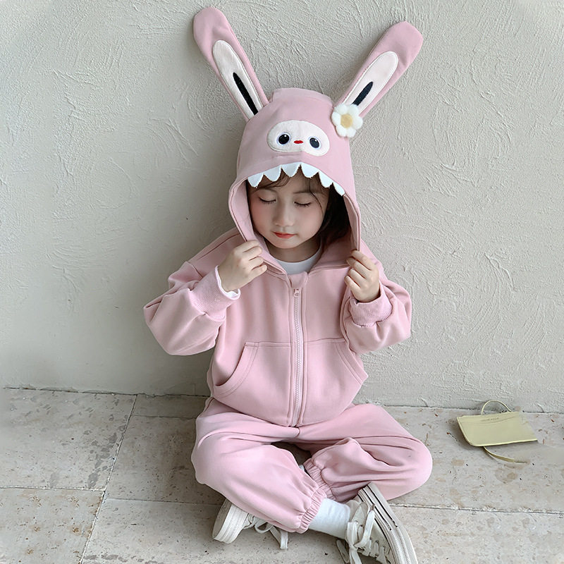 幼悠女童运动套装 复古运动裤 春装 春秋立领棒球服外套卡通儿童童装