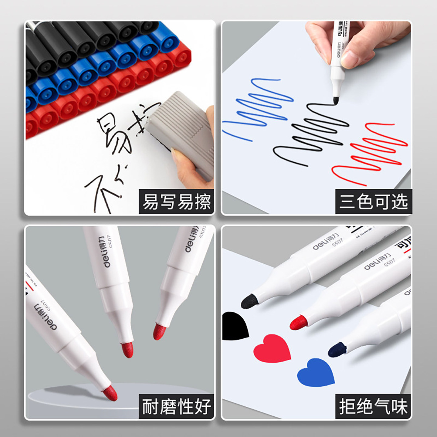 得力可擦白板笔教师用水性黑色儿童无毒彩色红色黑板笔画板写字易擦写粗头大头记号笔可擦除专用细头批发水笔