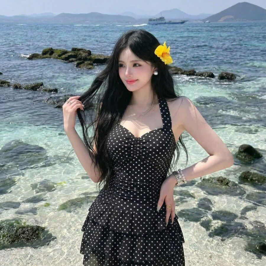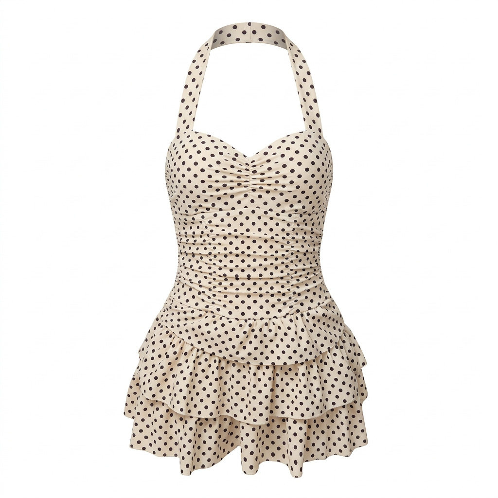 韩国ins风复古经典 修身 显瘦大小胸连体游泳衣女泳装 波胆蛋糕裙款