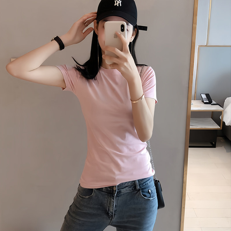 上衣女纯色打底衫 内搭小白T 薄款 短袖 纯棉 网易严选白色t恤男夏季