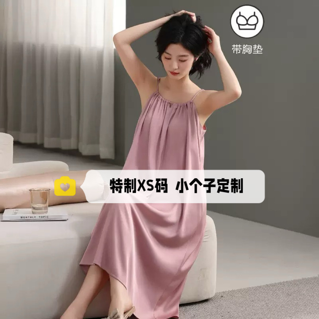 春夏150cm小个子奢华缎面冰丝吊带睡裙女精致家居服舒适凉感xs码由