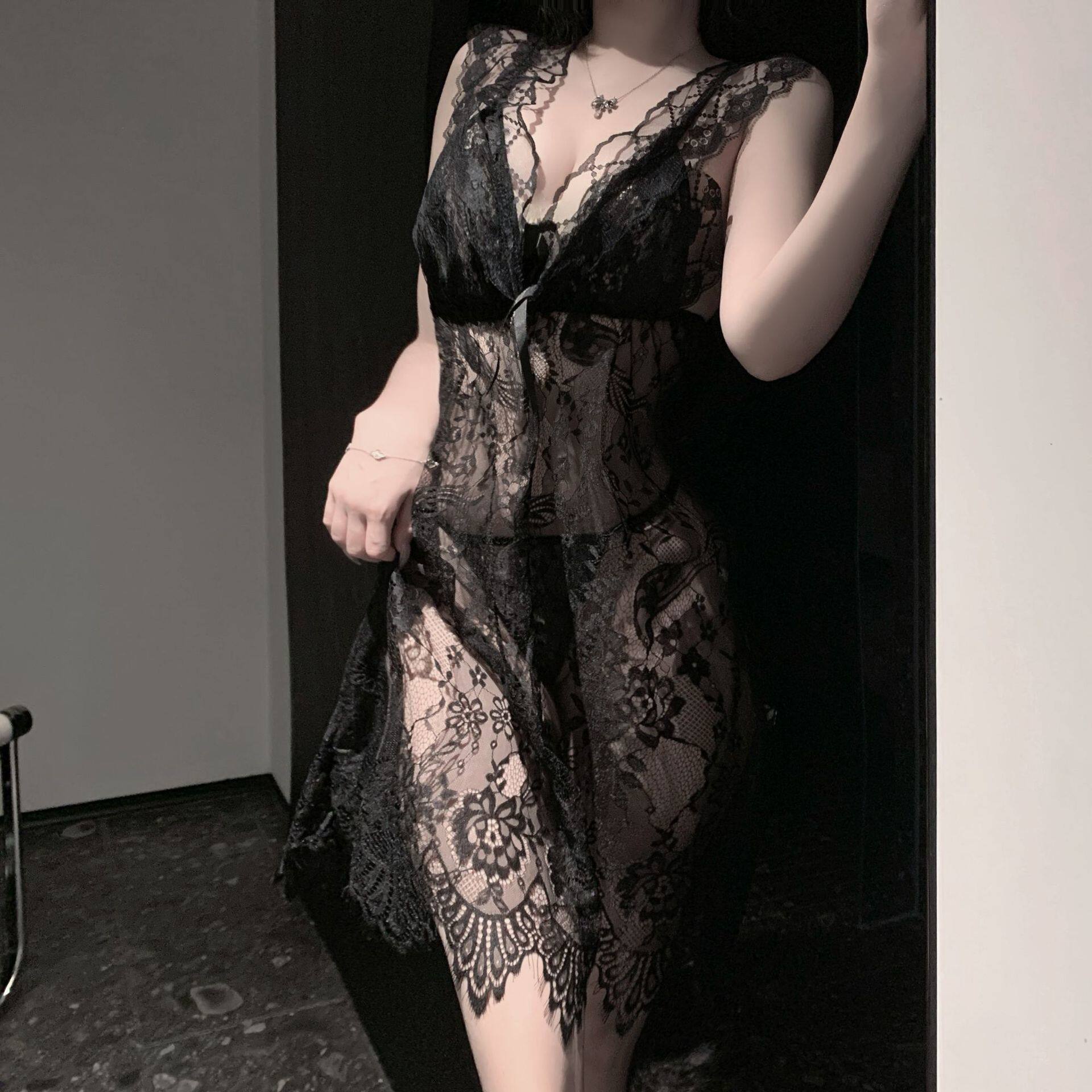 为您提供商品性感战蕾丝纯欲内衣情趣味小胸带胸垫床上吊带睡裙袍 春秋睡衣女款的详细介绍,
