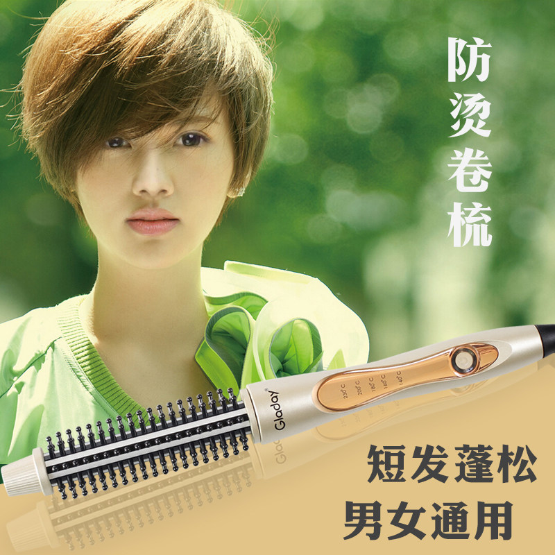 定型烫发神器懒人刘海打理头发 短发蓬松电卷梳内扣卷发棒家用男士