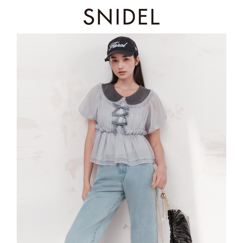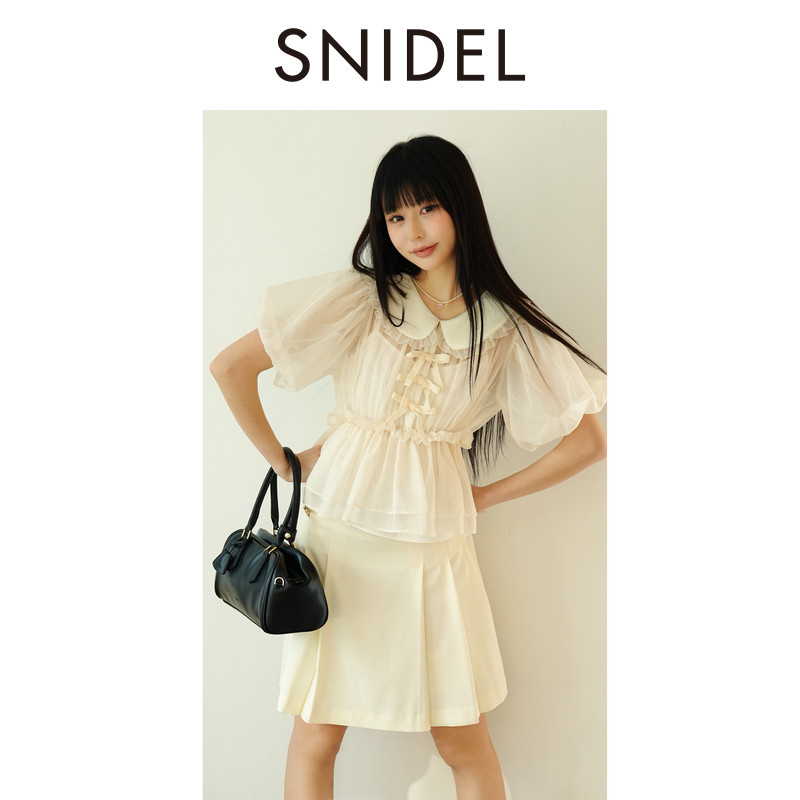 收腰衬衫 上衣SWFB261305 甜美丝绒娃娃领泡泡袖 SNIDEL2026春夏新品