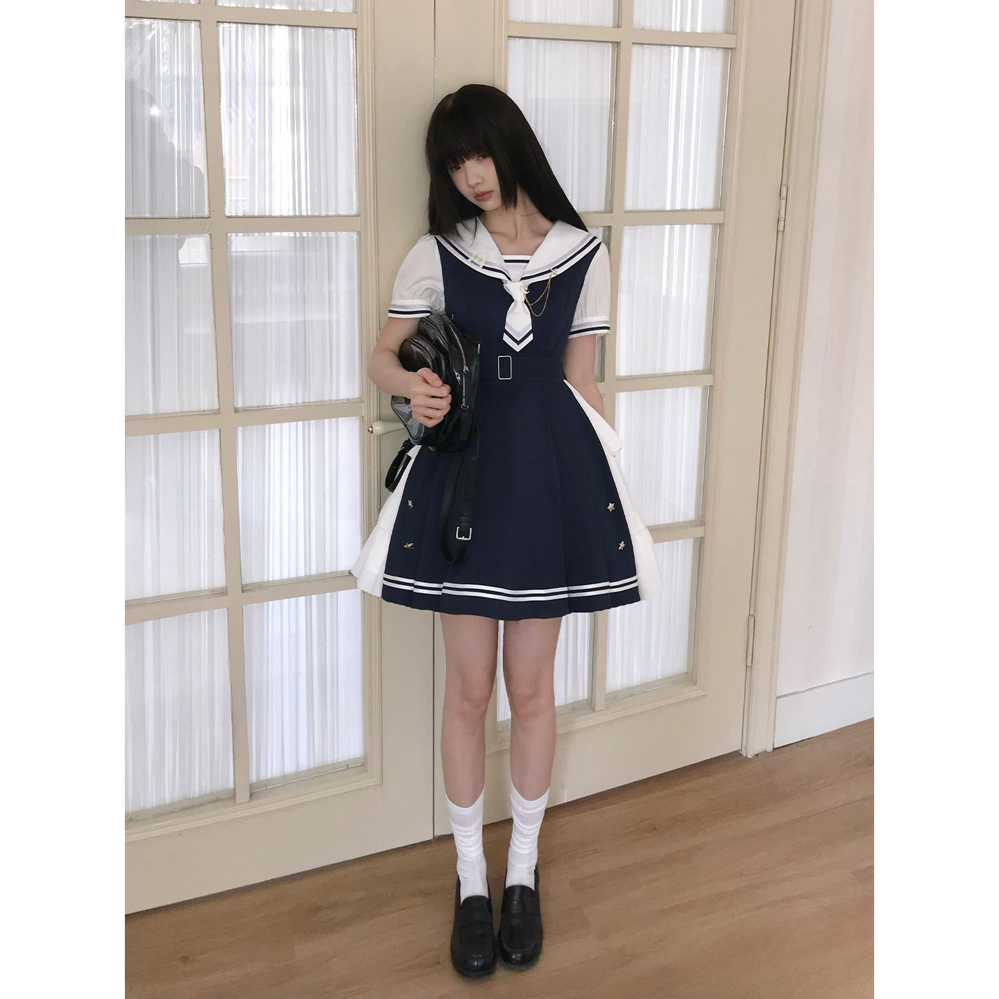 为您提供商品啦啦酱 海军领学院风连衣裙蓝色拼接收腰大裙摆短裙女 京都星光的详细介绍,