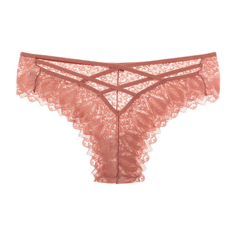 欧美细带镂空性感蕾丝内裤 女棉裆诱惑蕾丝边中腰无痕黑色三角裤由