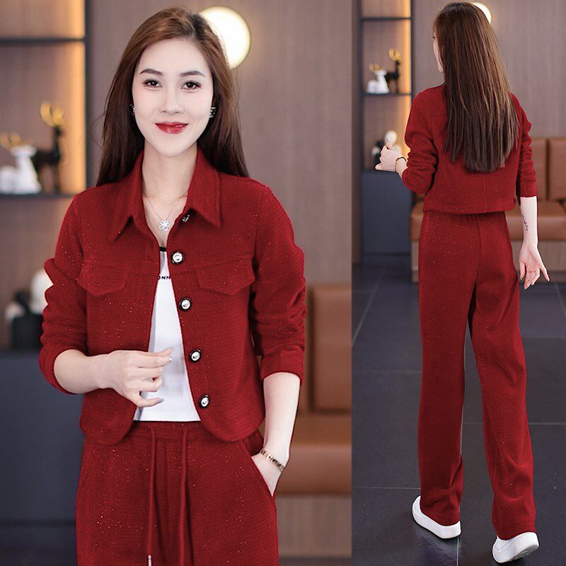 为您提供商品女士2024春秋新款 小个子高端洋气减龄两件套 休闲运动套装 红色时尚的详细介绍,