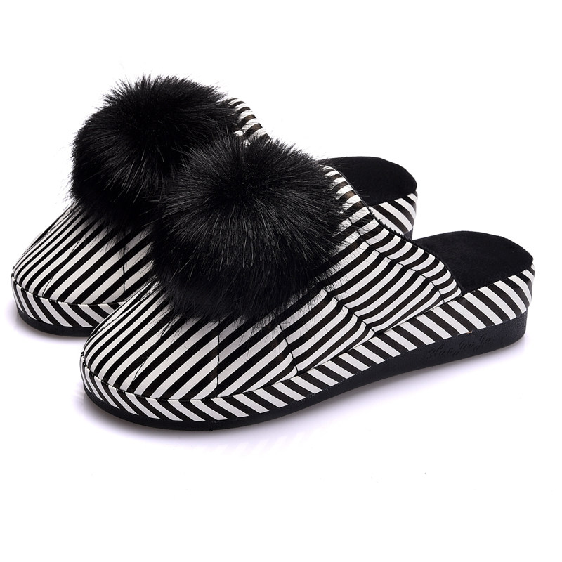 为您提供商品女防水坡跟厚底防滑包后跟月子 室内外穿a冬保暖居家毛球皮棉拖鞋的详细介绍,