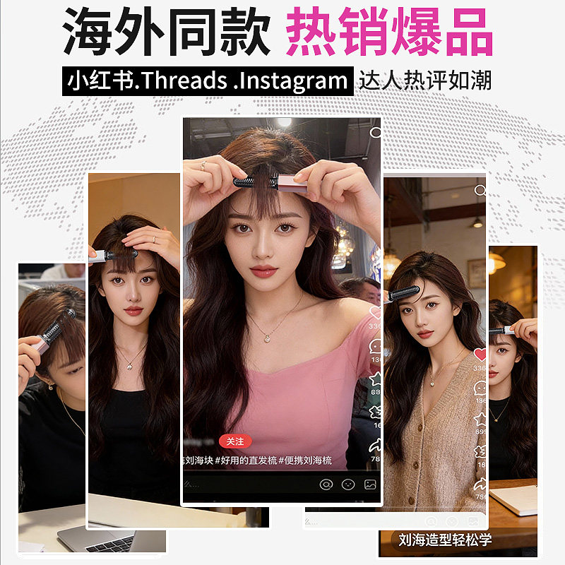 随身卷发棒造型梳子 刘海梳迷你直发梳无线便携八字刘海神器口红款