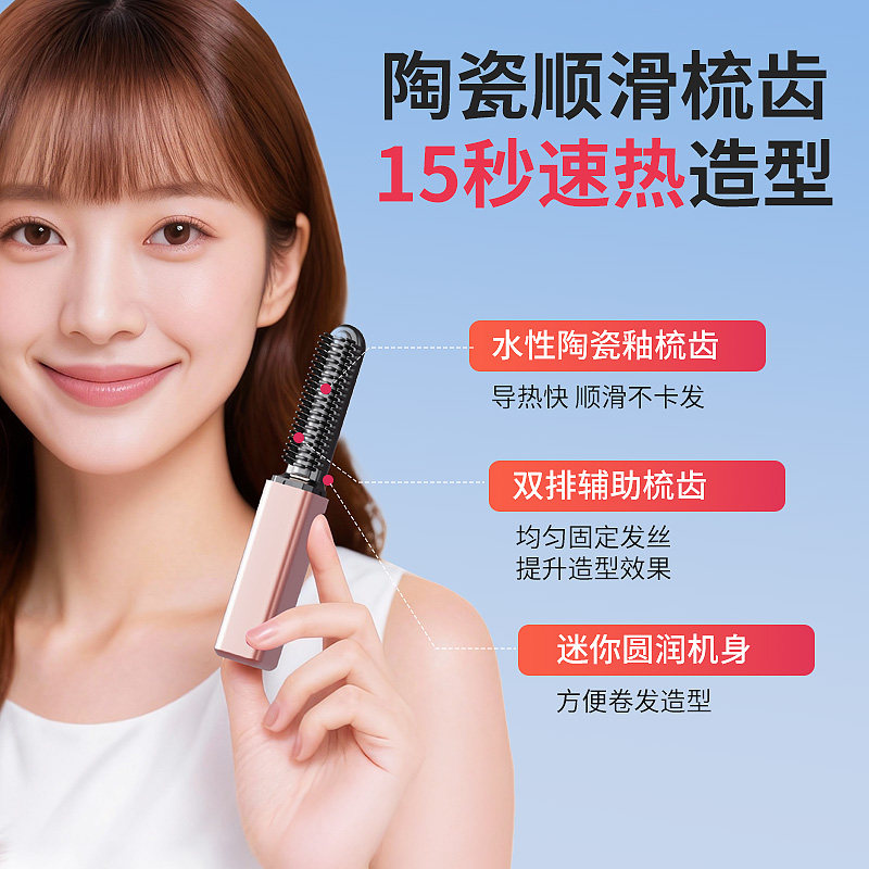 电动梳美发两用直夹内扣造型梳 无线直发梳负离子护发迷你便携式