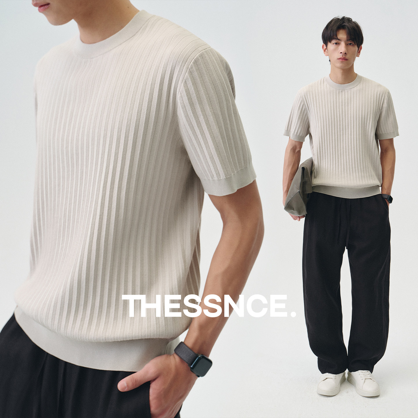 抽针设计 干爽高捻棉质地 16针高密织造 风琴褶 T恤 宽松针织短袖由