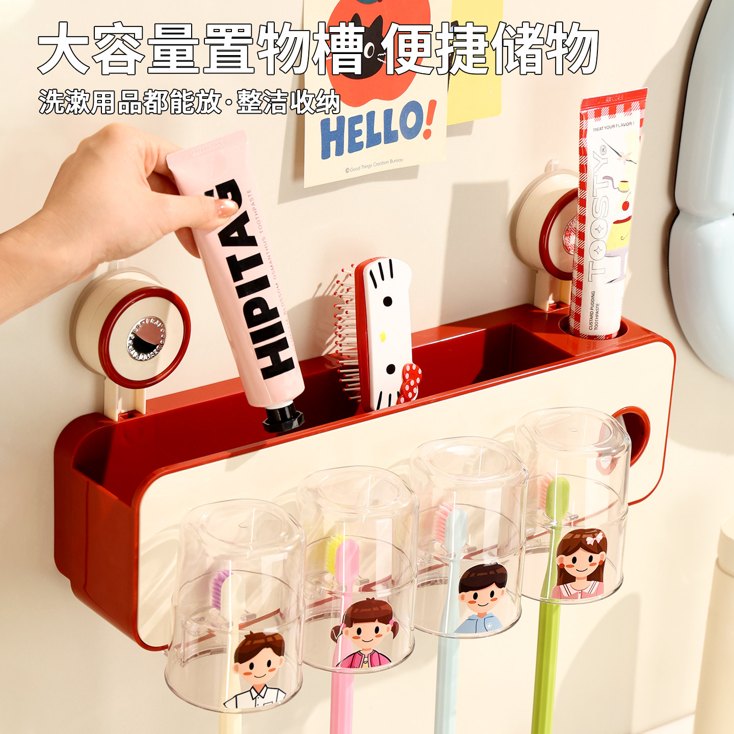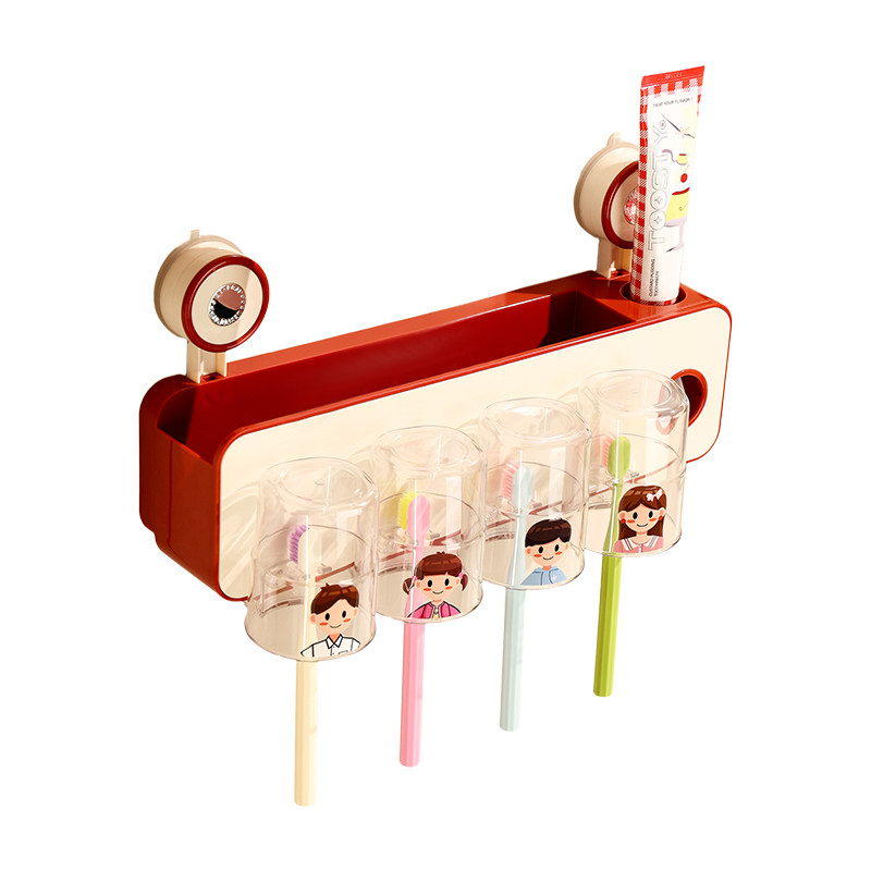 免打孔漱口杯架家用卫生间牙刷挂架 吸盘挤牙膏器牙刷置物架壁挂式