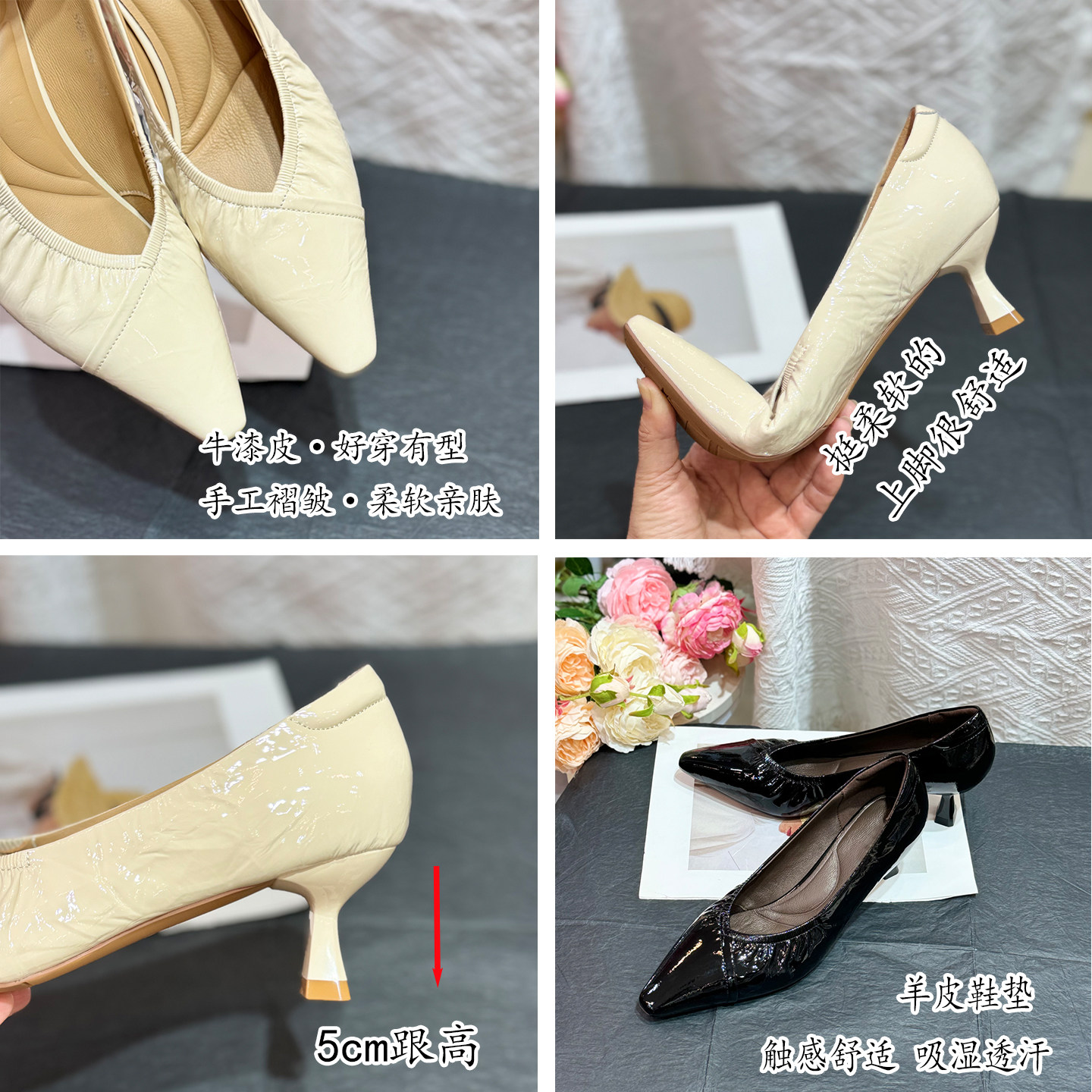 ol工作鞋 简约 不累脚通勤细跟高跟鞋 真皮舒适浅口单鞋 巨好穿 法式由