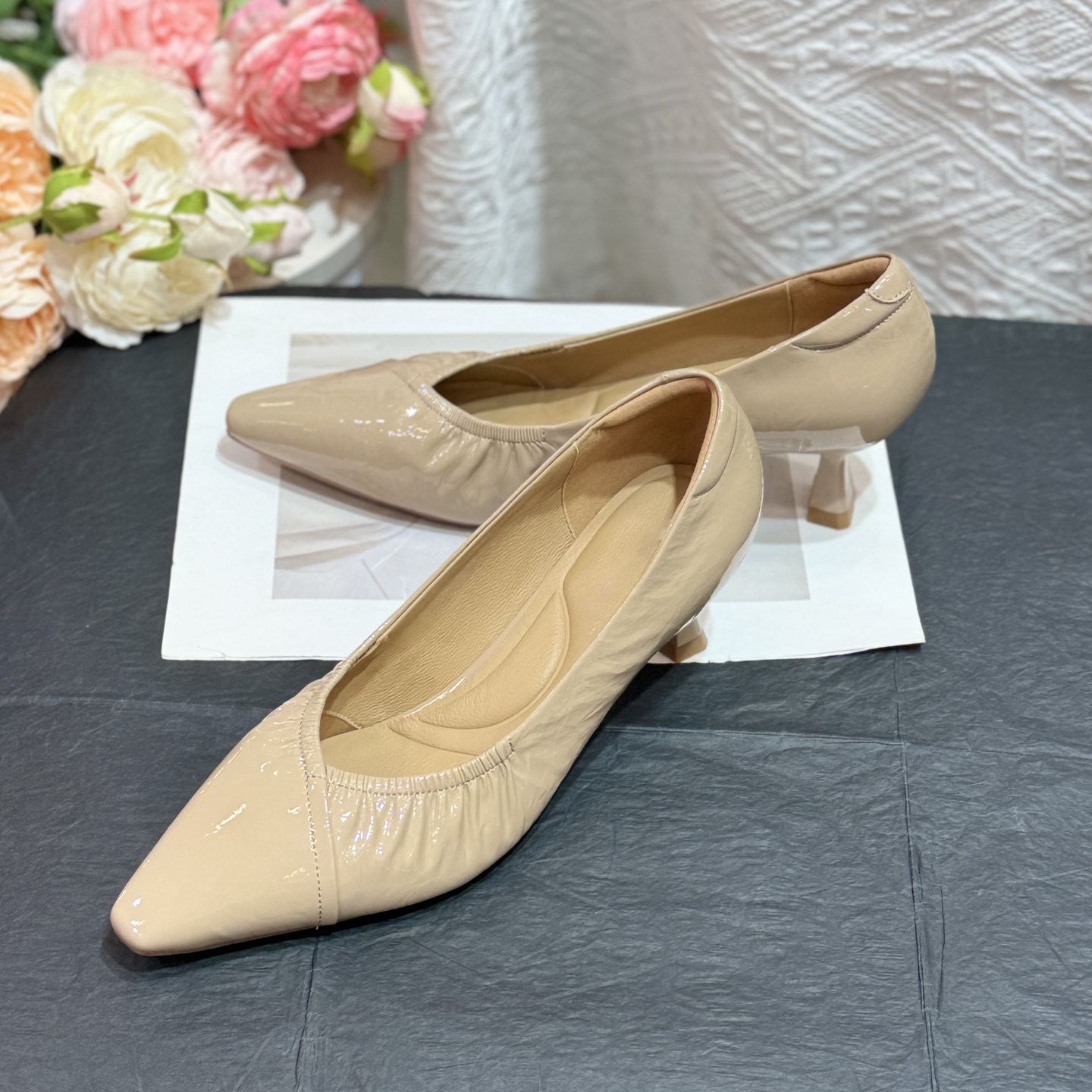 高跟鞋 羊皮版 子 新款 气质裸色浅口法式 内增高尖头单鞋 女2025爆款