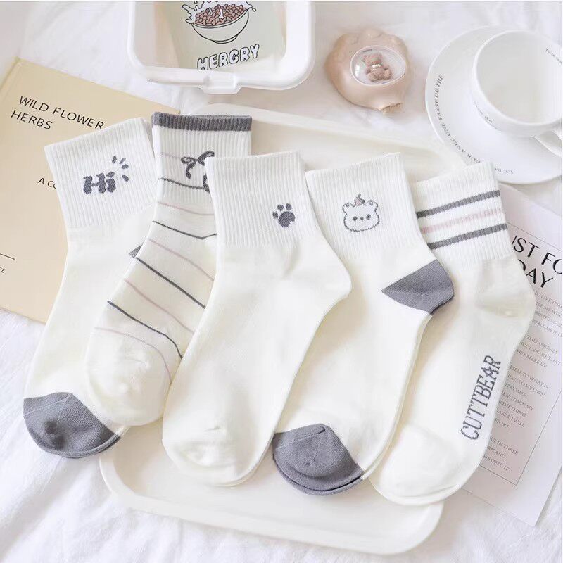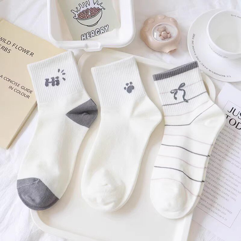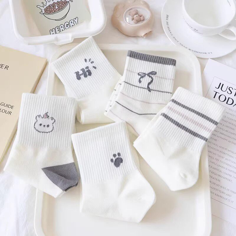 100%新疆棉纯棉袜子男女同款 运动袜中筒四季 短筒长袜ins潮 6双