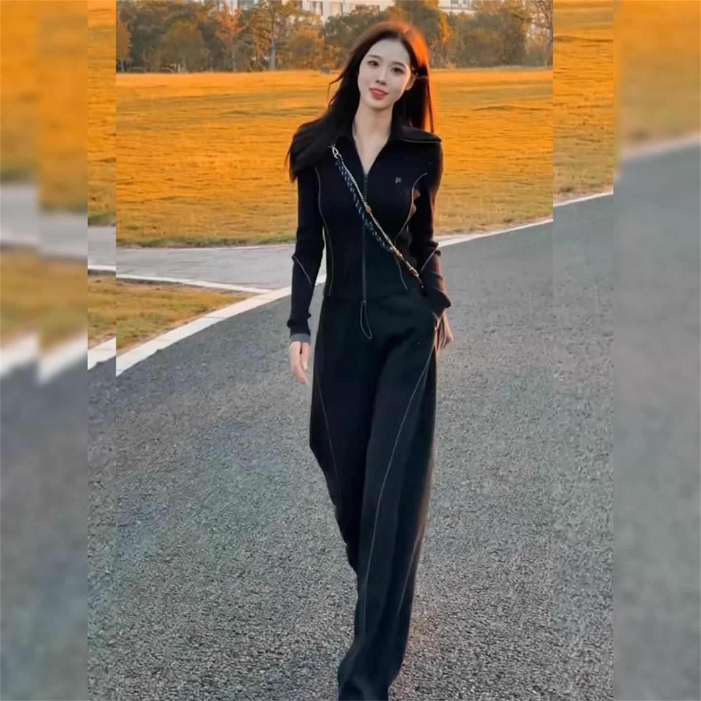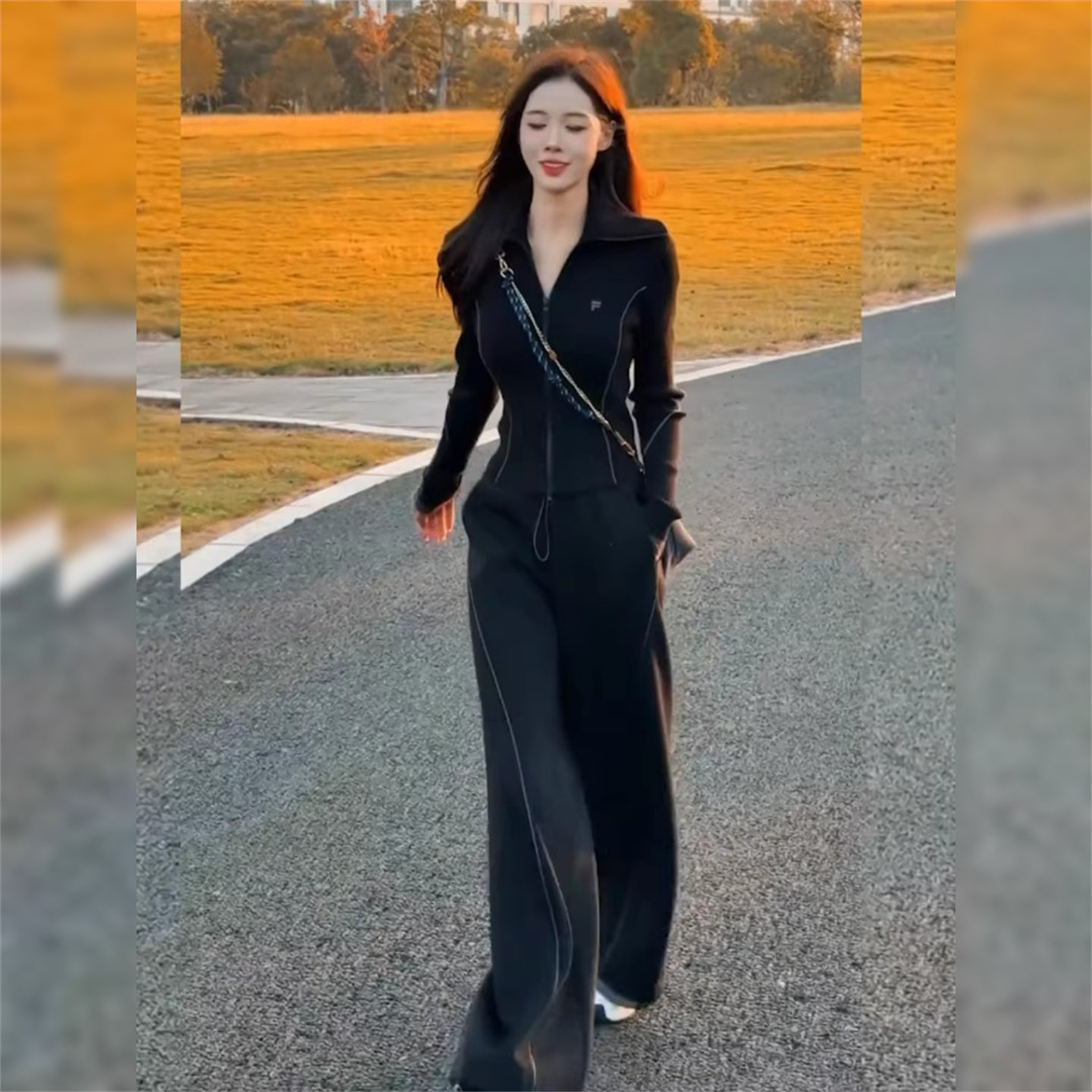 阔腿裤 高级感休闲运动套装 两件套 拉链开衫 减龄修身 女2026春季 时尚