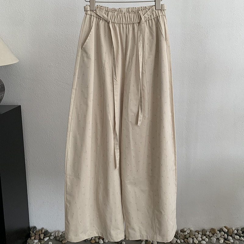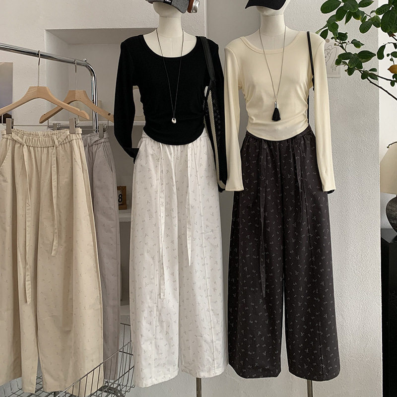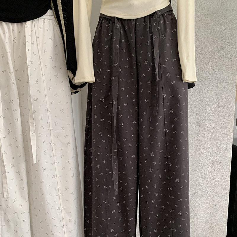 长裤 欧玛莱 6706 韩版 新款 松紧高腰绑带小碎花弯刀阔腿裤 2026春季