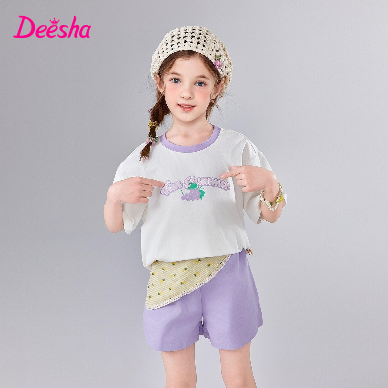 短裤 笛莎官方童装 两件套 大童女孩儿童洋气时尚 新款 女童套装 夏季由