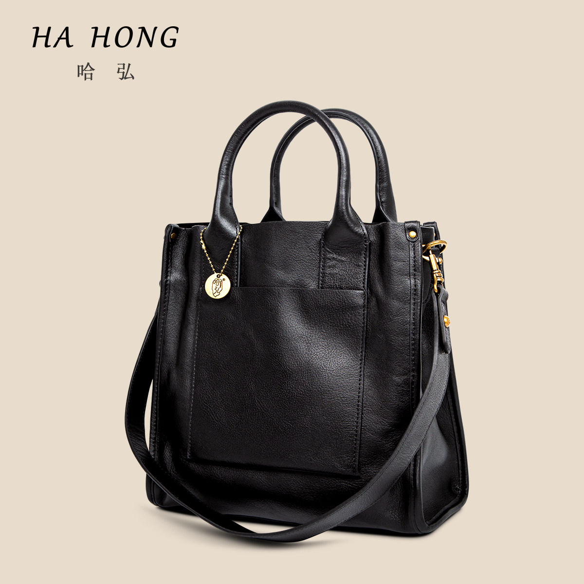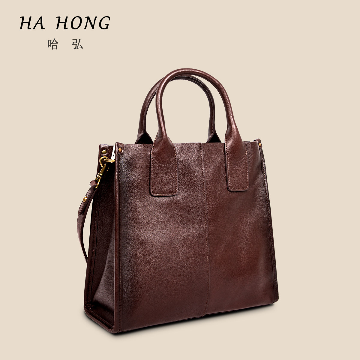 为您提供商品托特包文件袋简约大气植鞣头层牛皮宽肩带通勤单肩手提包 哈弘新款的详细介绍,