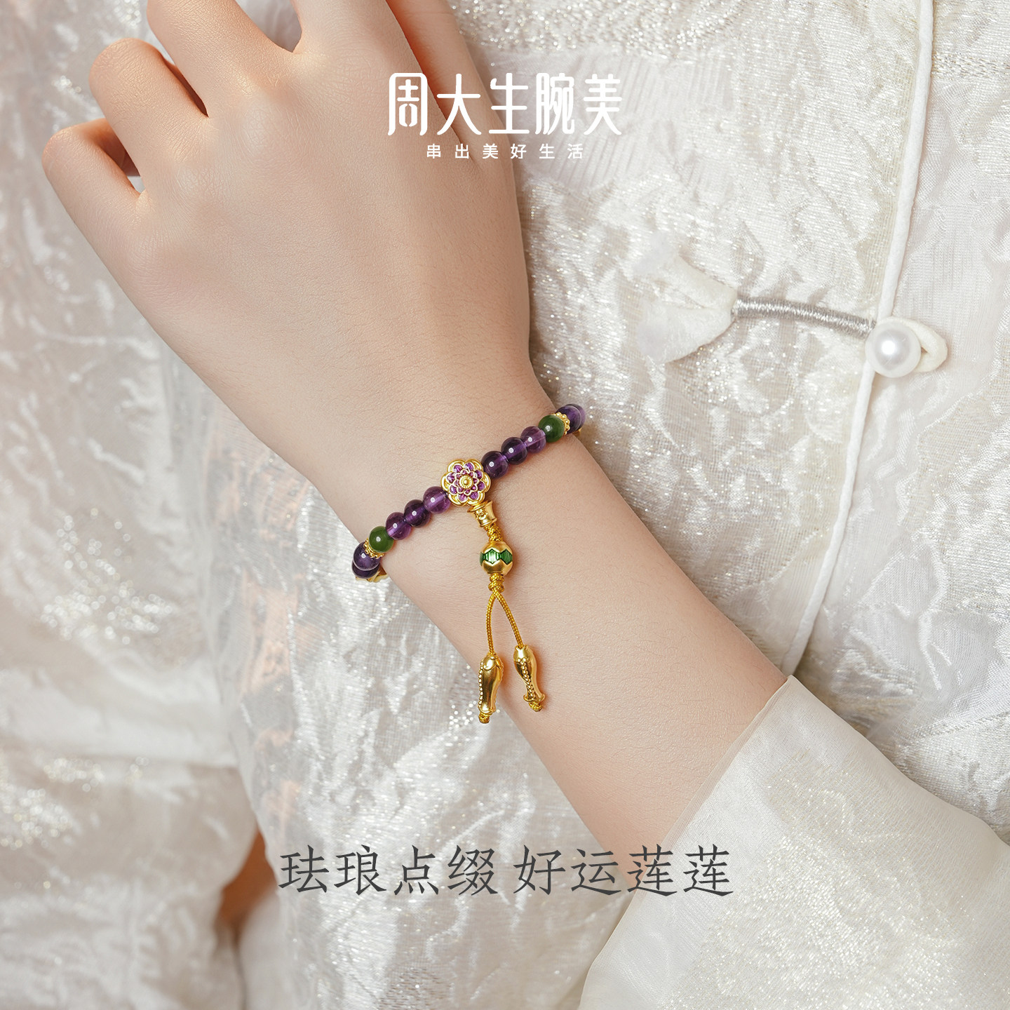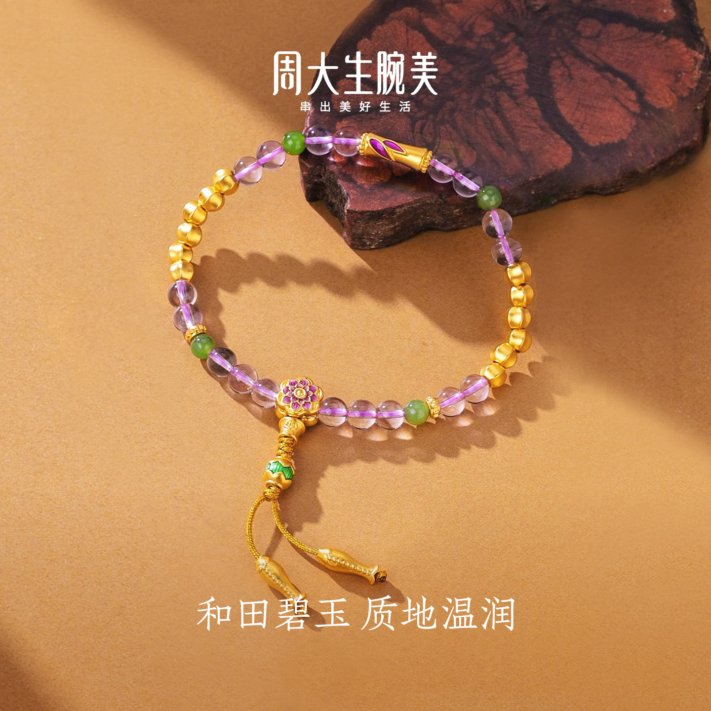 为您提供商品周大生腕美如意普陀系列黄金紫水晶手串女和田碧玉手链生日礼物的详细介绍,