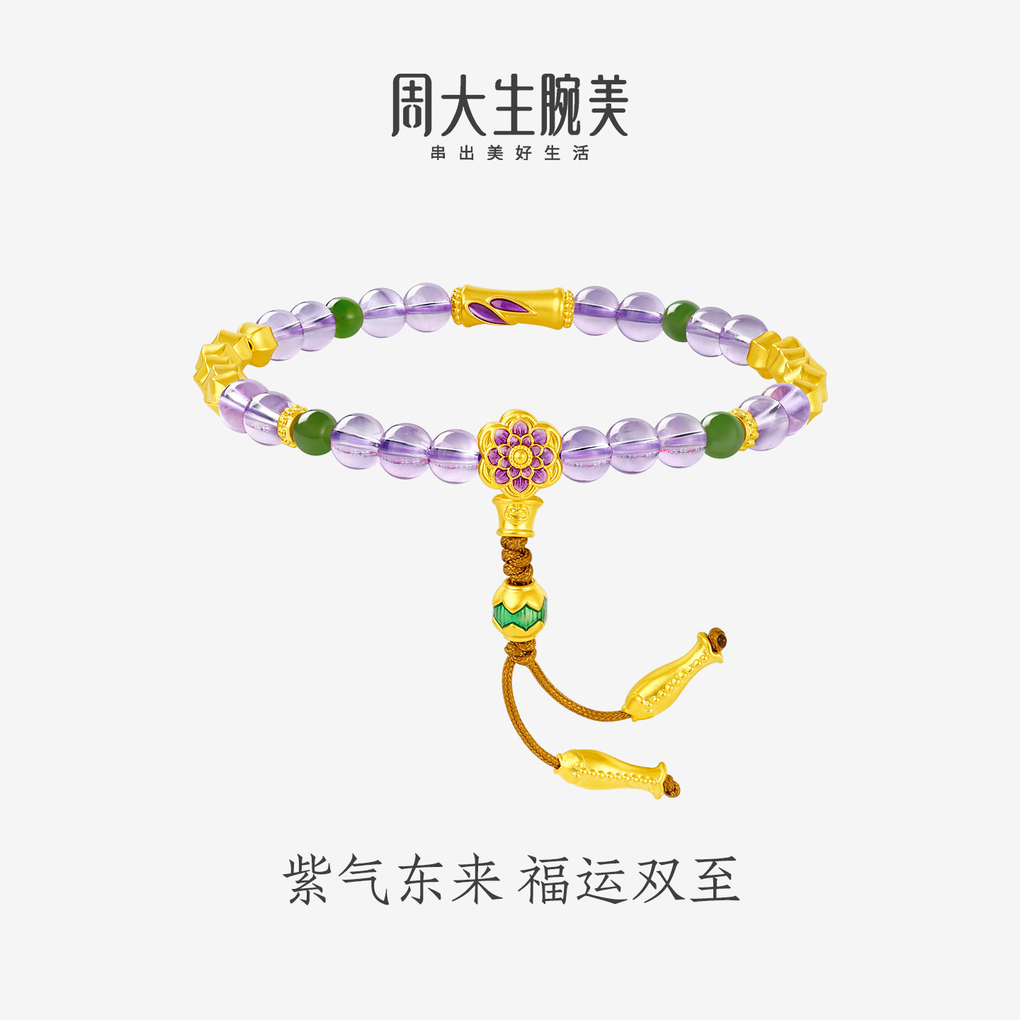 周大生腕美如意普陀系列黄金紫水晶手串女和田碧玉手链生日礼物