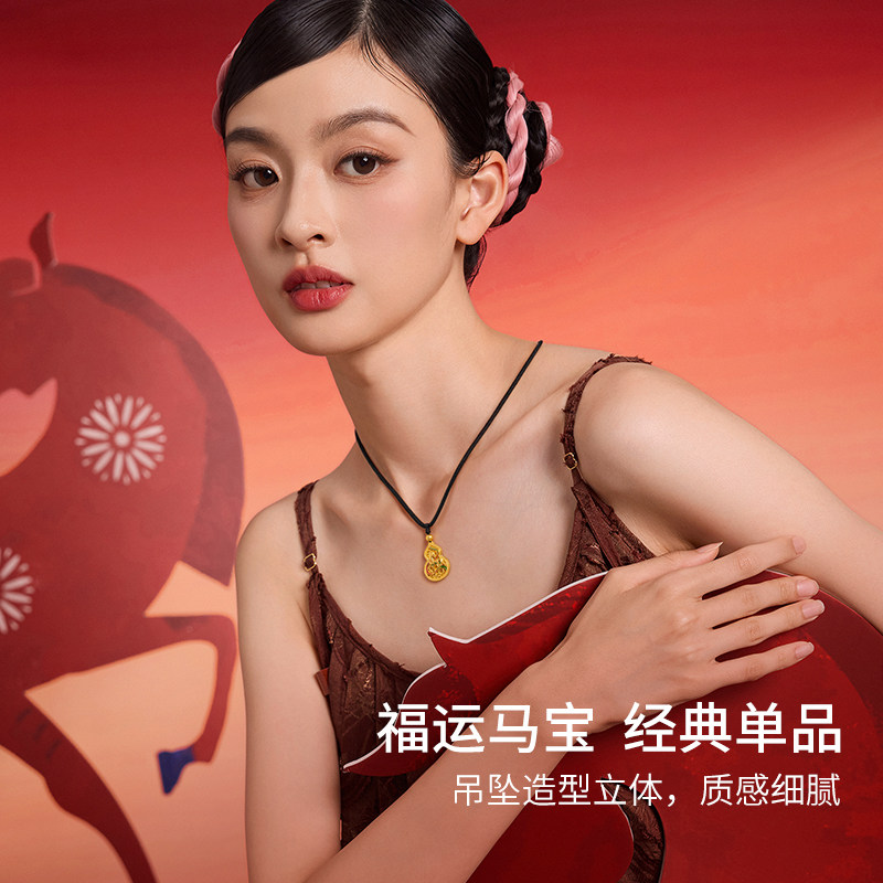 周六福黄金计价足金本命年马年敦煌彩马吊坠生肖马系列节日礼物由