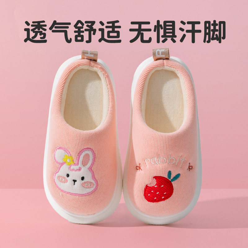 男女童室内居家用防滑保暖小孩宝宝包跟棉鞋 软底 秋冬季 儿童棉拖鞋