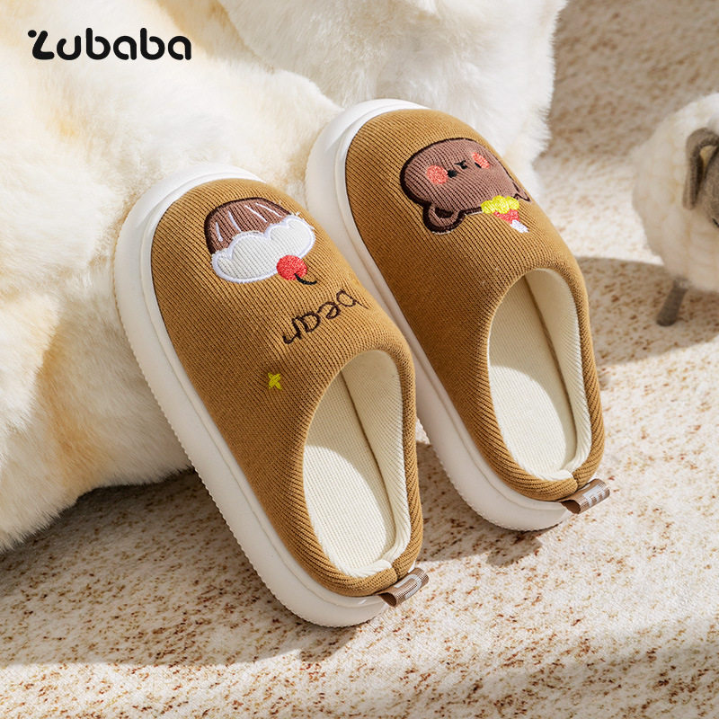 ins男女时尚 细细条 情侣棉拖鞋 可爱小狗冬季 百搭防滑居家月子棉鞋