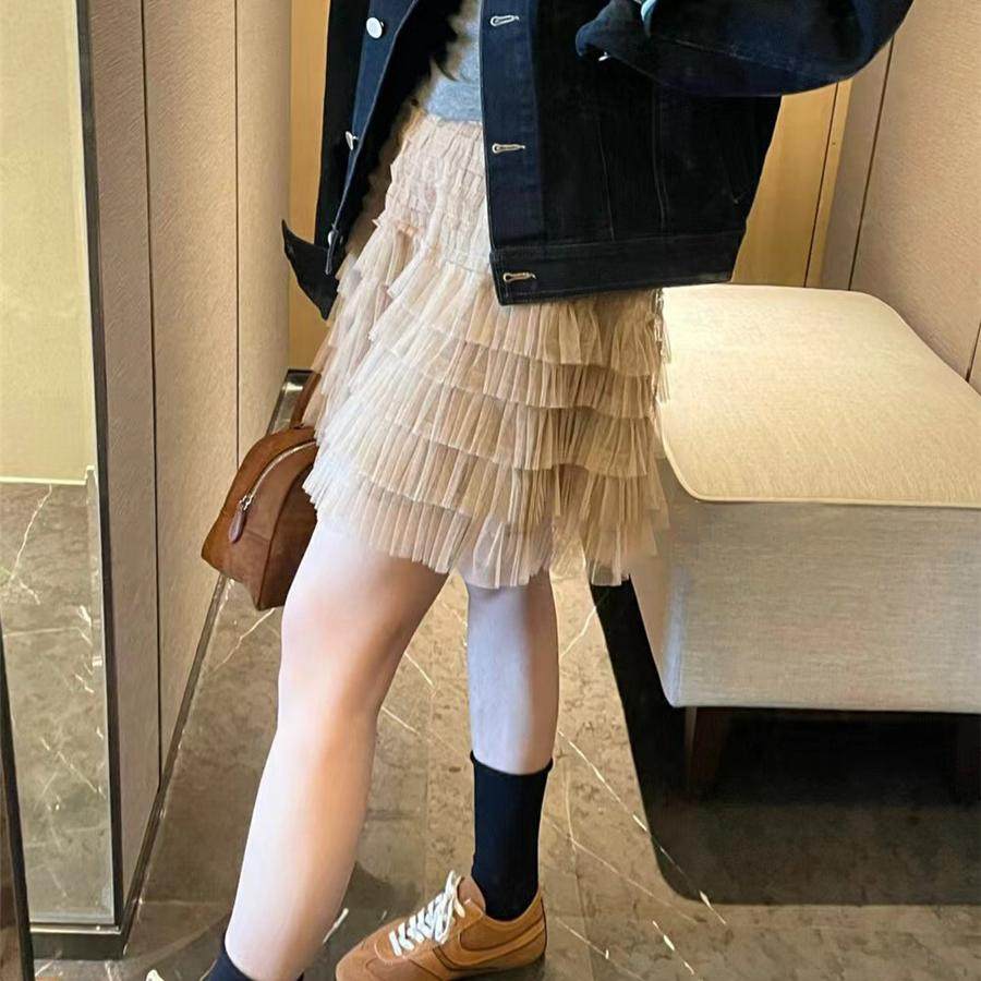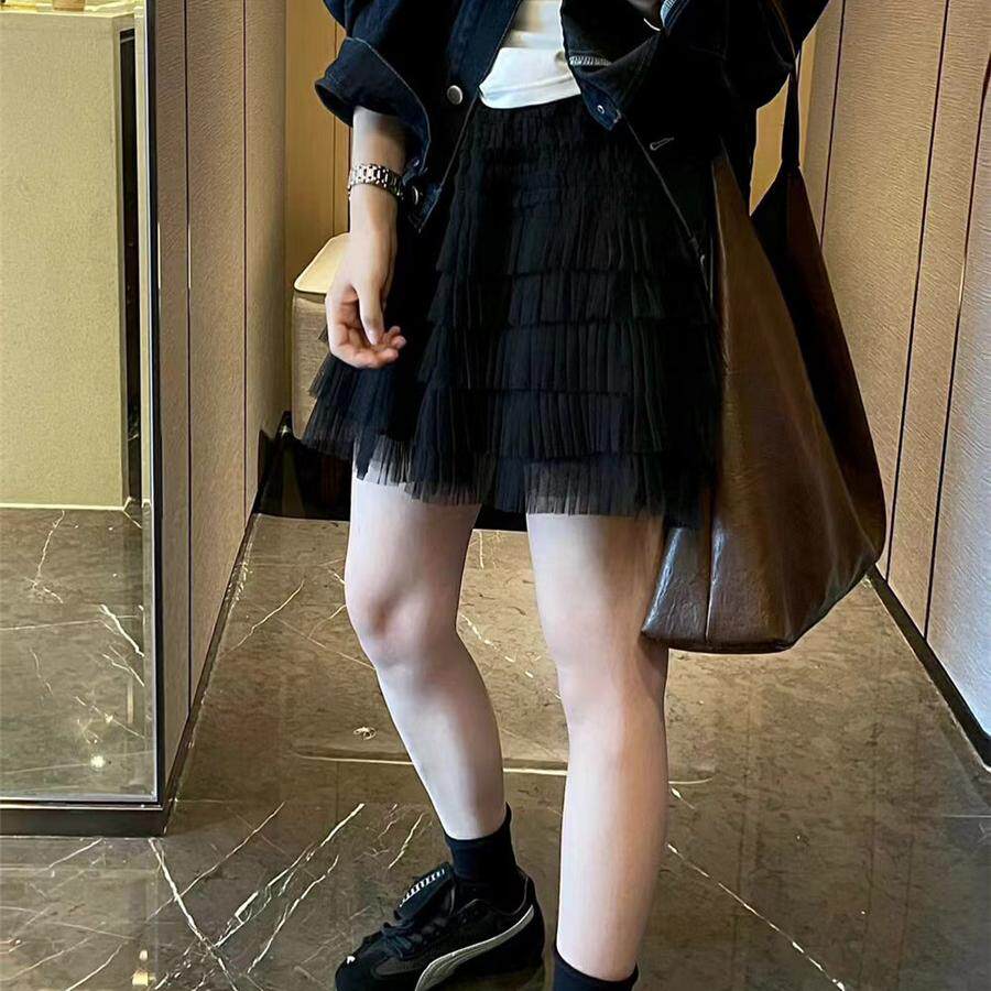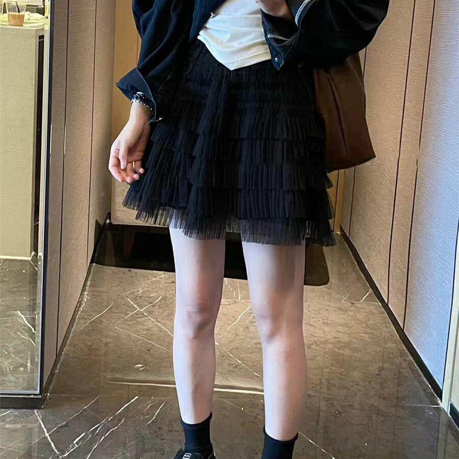 欧货高腰显瘦蓬蓬裙女黑色网纱蛋糕短裙子半身a字裙 2025秋冬新款