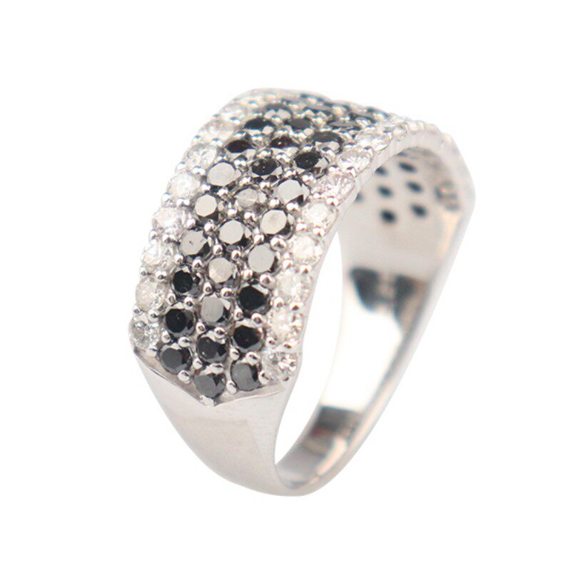 中古「95新」日本进口商品3排黑钻2排钻石戒指K18白金57号高级由