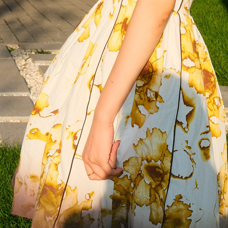 气质复古中长款 连衣裙 印花吊染无袖 WU春夏新款 花苞裙 JASON由