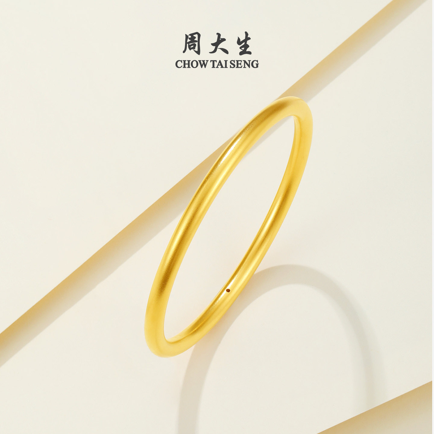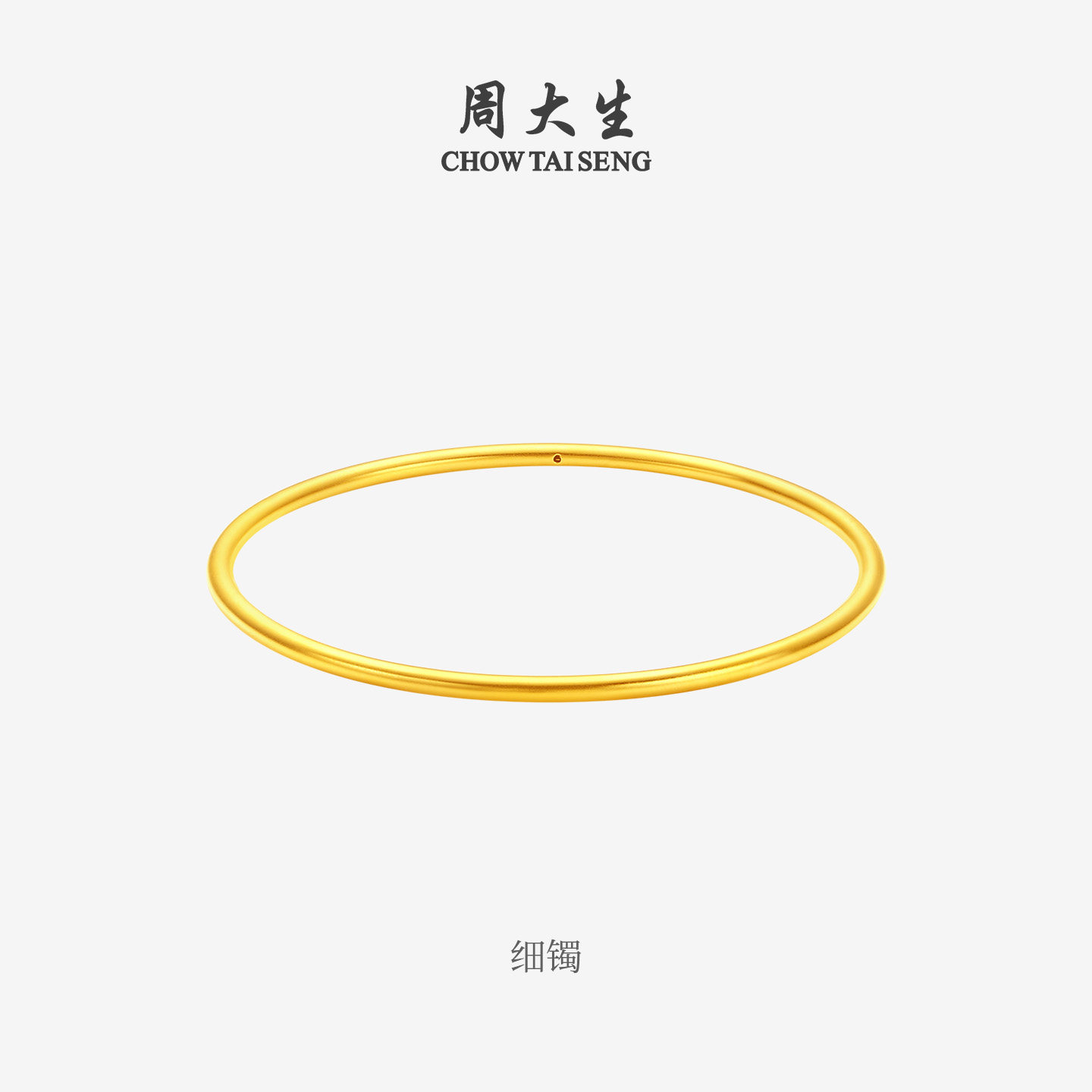 足金硬金素圈光面金镯子送女朋友生日礼物 周大生黄金细手镯女款