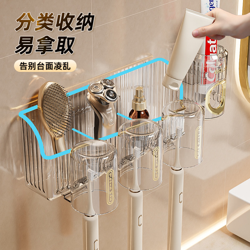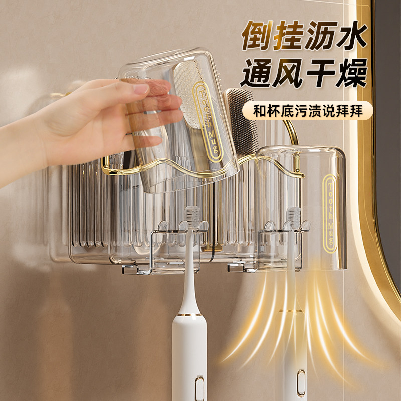 卫生间电动 牙刷置物架架子杯子牙膏漱口杯免打孔刷牙杯牙缸壁挂式