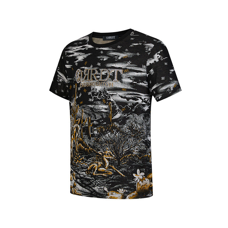 新款 ORRDT澳林丹顿男装 潮流花版 圆领T恤男夏季 AT17E1637 短袖