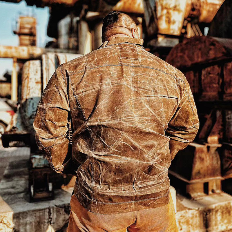 核爆炸巴恩风美式 复古古着牛仔猎装 硬工装 外套帆布油蜡夹克 大码