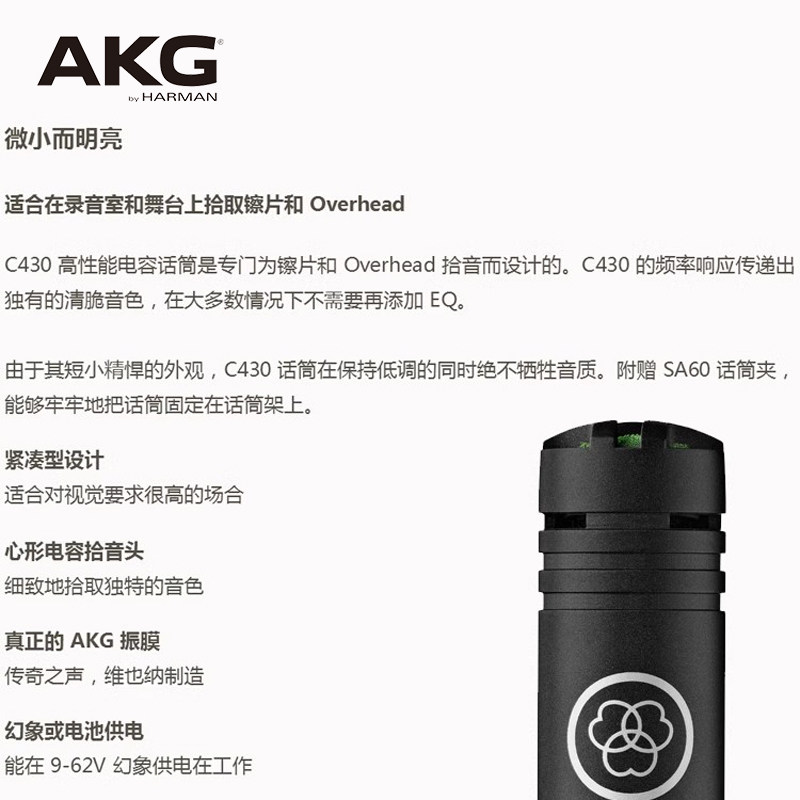 为您提供商品AKG C430微型专业电容麦克风乐器镲片overhead有线话筒 爱科技的详细介绍,