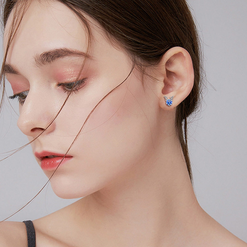 999纯银耳钉女养耳洞耳骨钉小众高级感锆石耳蜗钉水钻耳环银耳饰