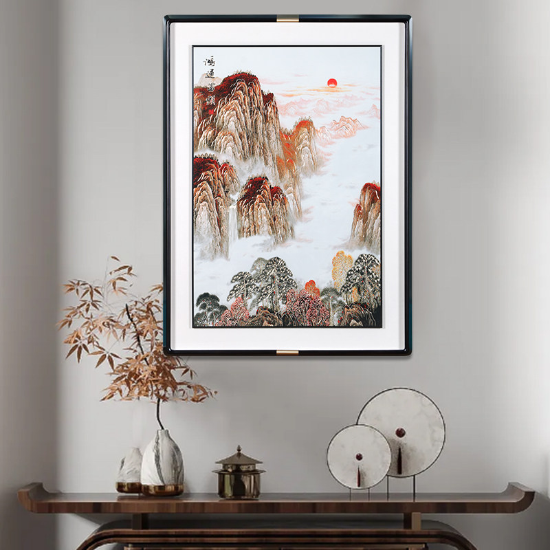 饰画客厅沙发背景墙靠山图现代办公室山水壁画 背靠金山卧室床头装