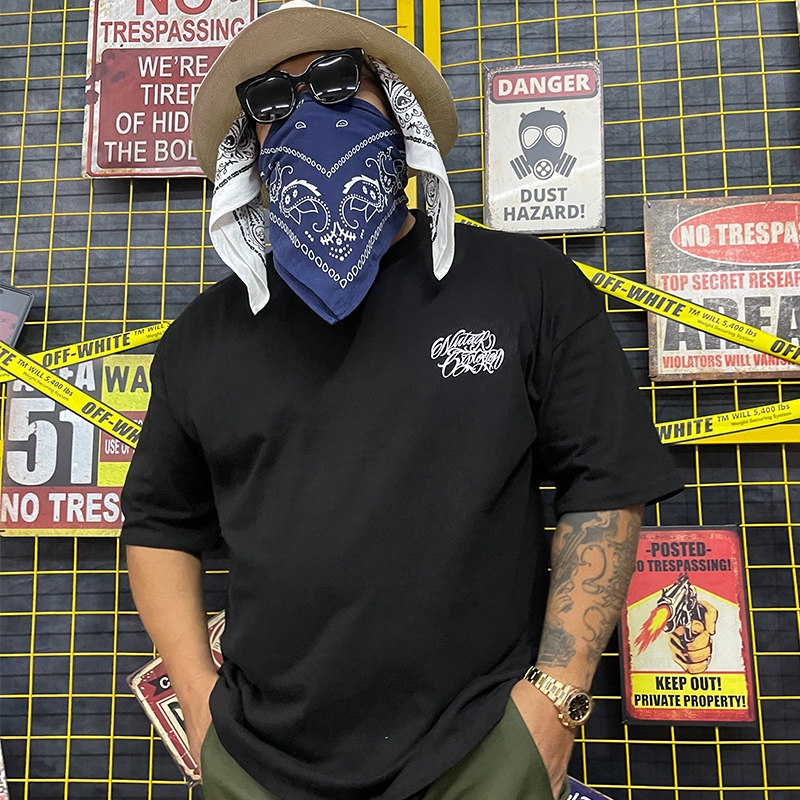 核爆炸祈祷 大码 黑白短袖 T恤 芬克鼠满背全彩印花纯棉重磅落肩袖