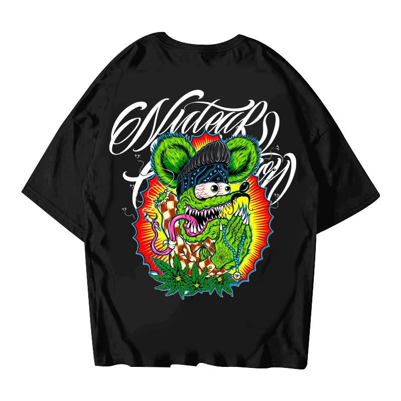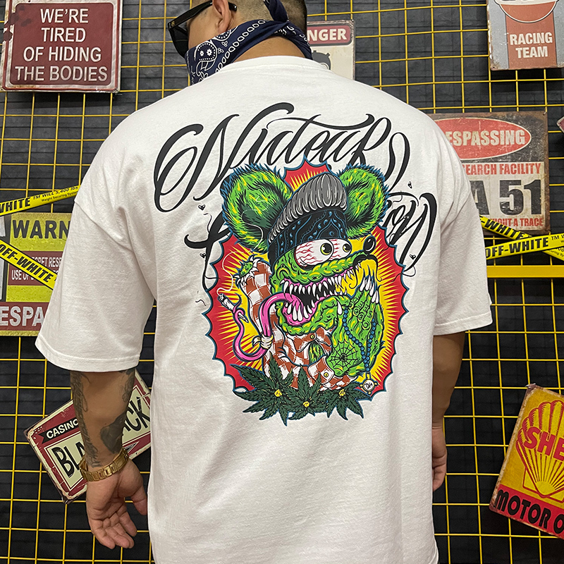 为您提供商品核爆炸祈祷 大码 黑白短袖 T恤 芬克鼠满背全彩印花纯棉重磅落肩袖的详细介绍,