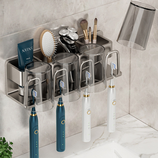 牙具架子牙缸牙膏漱口杯挂架一家四口 免打孔电动牙刷置物架壁挂式由