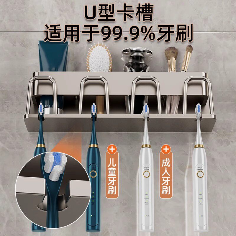 牙刷挂架子卫生间牙刷收纳底座牙具置物架 电动牙刷架免打孔壁挂式