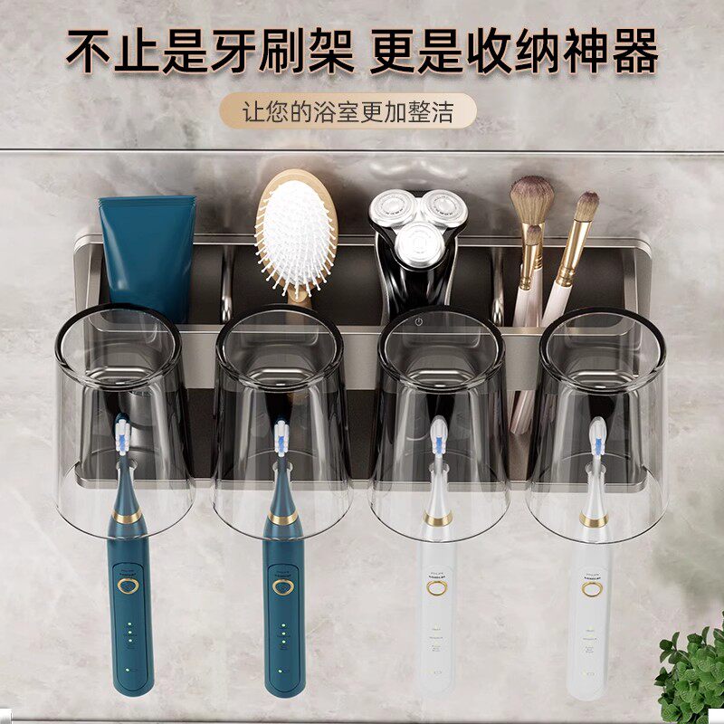 为您提供商品牙具架子牙缸牙膏漱口杯挂架一家四口 免打孔电动牙刷置物架壁挂式的详细介绍,
