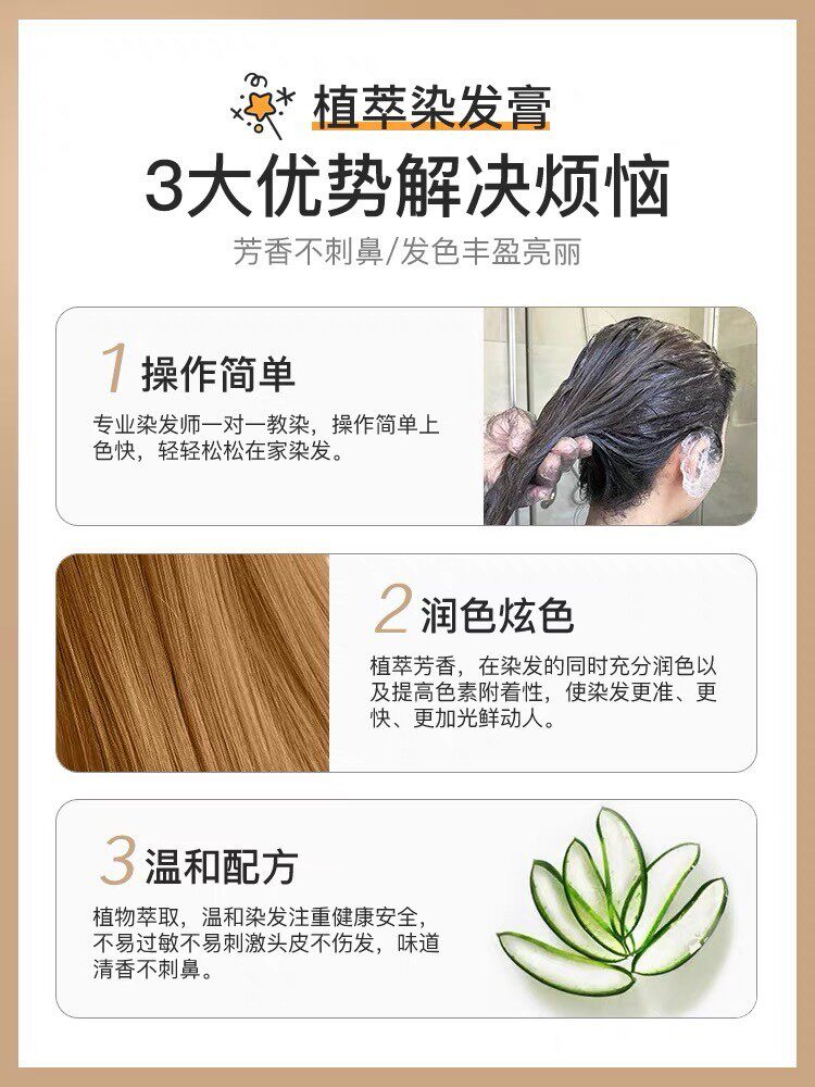 珍草堂植物染发剂无异味科技更温和修护天然黑棕彩色染发霜不刺激