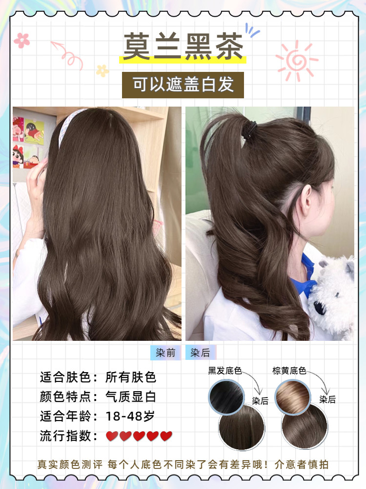 为您提供商品黑茶冷棕色染发剂2023流行色显白植物莫兰黑茶纯自己在家染头发膏的详细介绍,