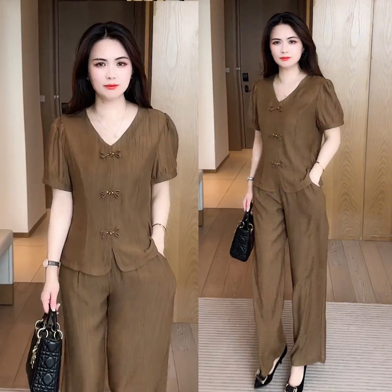 为您提供商品新款 夏季 时尚 国风上衣阔腿裤 胖MM套装 两件套女洋气减龄新中式 大码的详细介绍,