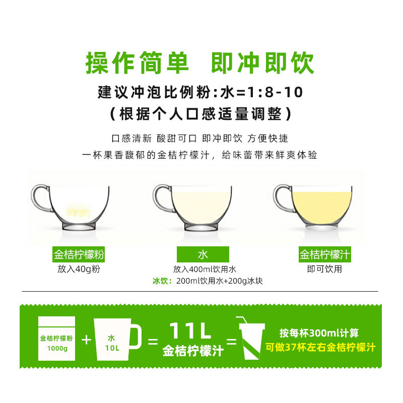 采集茶香金桔柠檬果汁粉1kg速溶冲饮商用咖啡饮料机原料草莓橙汁由
